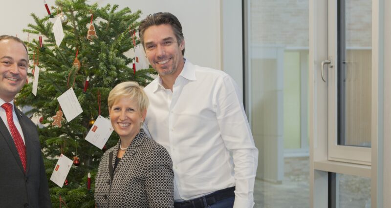BU: v.l. Michael Fritz, General Manager Steigenberger Hotel Treudelberg Hamburg, Prof. Dr. Ania C. Muntau, Klinikdirektorin Kinder- und Jugendmedizin UKE Hamburg und Michael Stich, Vorstand Michael Stich Stiftung, Anfang Dezember 2017 bei der Übergabe der Wunschzettel im UKE Hamburg
