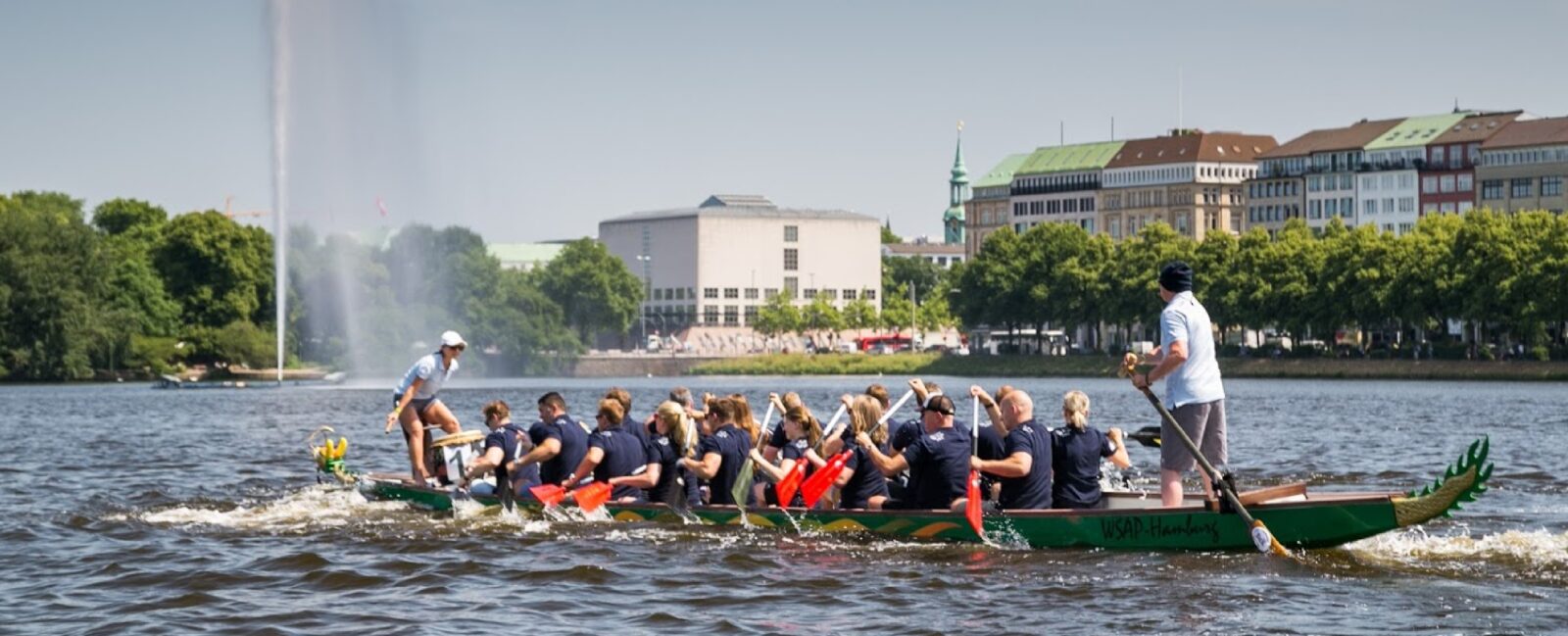 Wenn wilde Rufe und dumpfe Trommelschläge über die Hamburger Binnenalster dröhnen, dann findet er wieder statt: der inzwischen legendäre Drachenboot Cup der Michael Stich Stiftung, der sich über die Jahre hinweg zu einer echten Institution entwickelt hat.